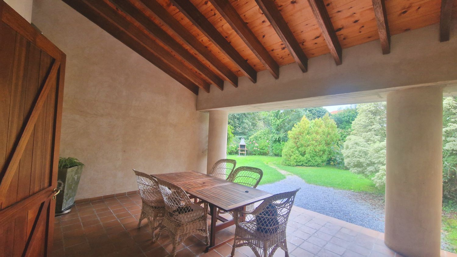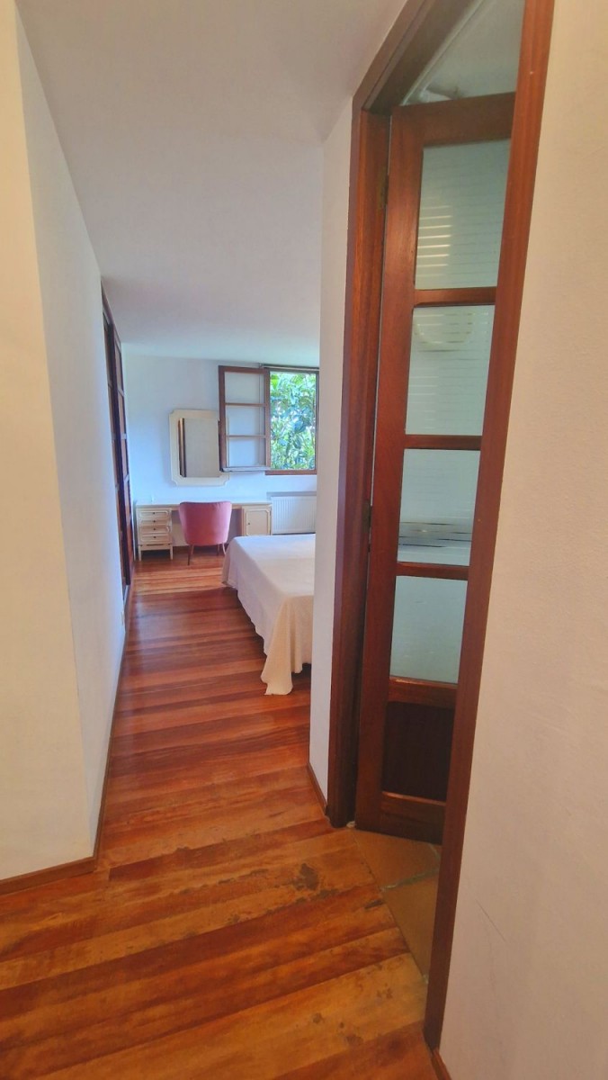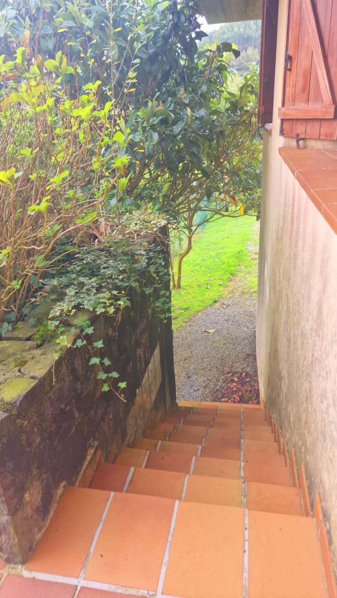 Dispone de jardín junto a la casa con barbacoa, dentro de una parcela de aproximadamente 3.100 m2, donde se ubica la casa, principalmente en una planta ya que dispone de cinco dormitorios y tres baños en ésta, tiene también una planta alta con dos dormitorios y una planta semi sótano donde se ubica el garaje trastero y cuarto de plancha y lavado.